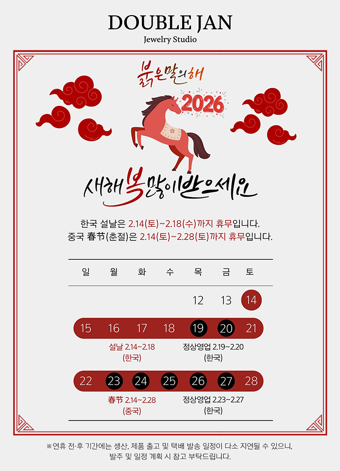 목록 [2026년 중국 春节(춘절)연휴 & 한국 설날 연휴 안내]★일정 변동★ 페이지 정보 더블젠 2026-01-30 33 회 0 건 본문 - 다음글unicef | for every child x DOUBLE JAN